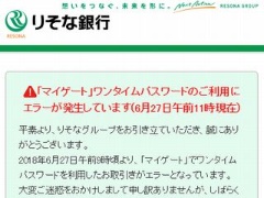 りそな銀行や新生銀行などで ワンタイムパスワード 機能が利用できない障害発生中