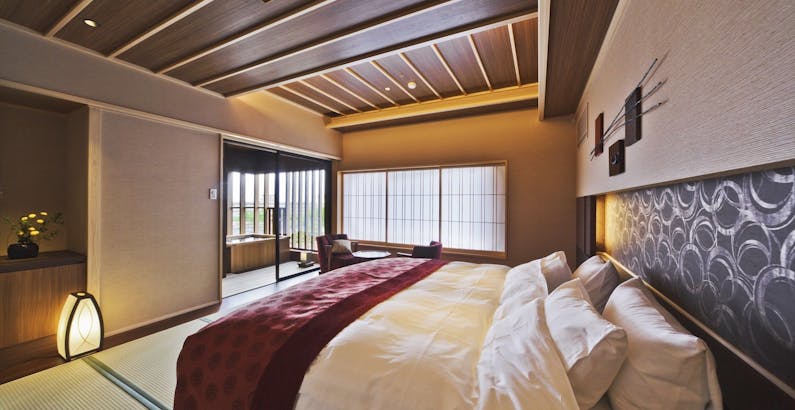 葭蘆葦 露天風呂付 和室ダブルベッド 禁煙 ロクシタンのセット付 全室温泉露天風呂 和室にベット はなれ葭蘆葦 で至高のひと時プラン おごと温泉 湯元館 一休 Com