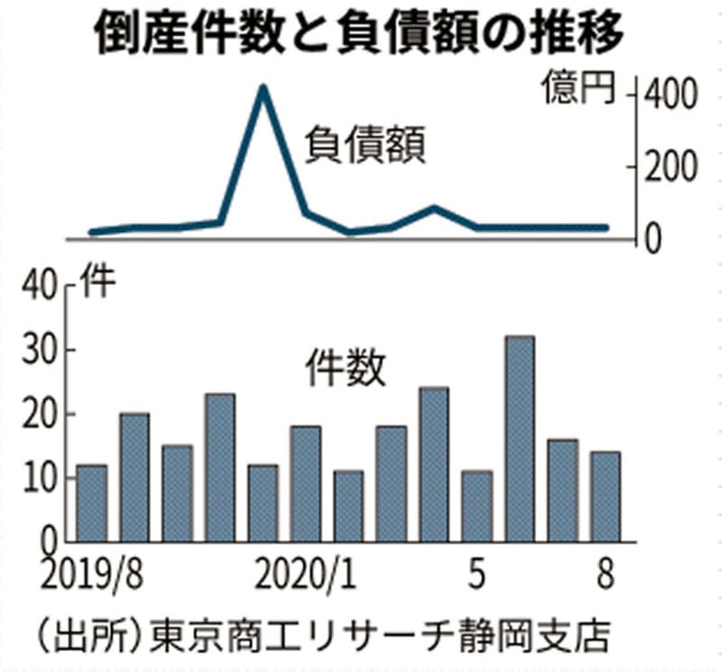 新型コロナ 静岡県内の8月倒産 大型倒産発生で負債総額3割増 日本経済新聞