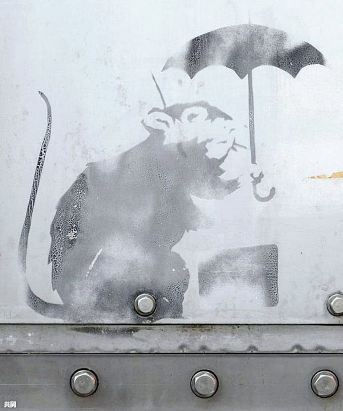 バンクシー 公開に3万5千人 都庁でネズミの絵を展示 路上芸術家バンクシーの作品に似たネズミの絵 四国新聞社