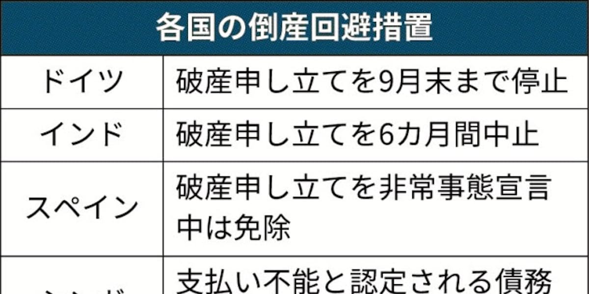 新型コロナ 中小企業の破産回避へ倒産基準緩和 ドイツやインド 日本経済新聞