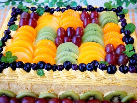フルーツたくさんの スクエアバースデーケーキ オーケストラな食卓