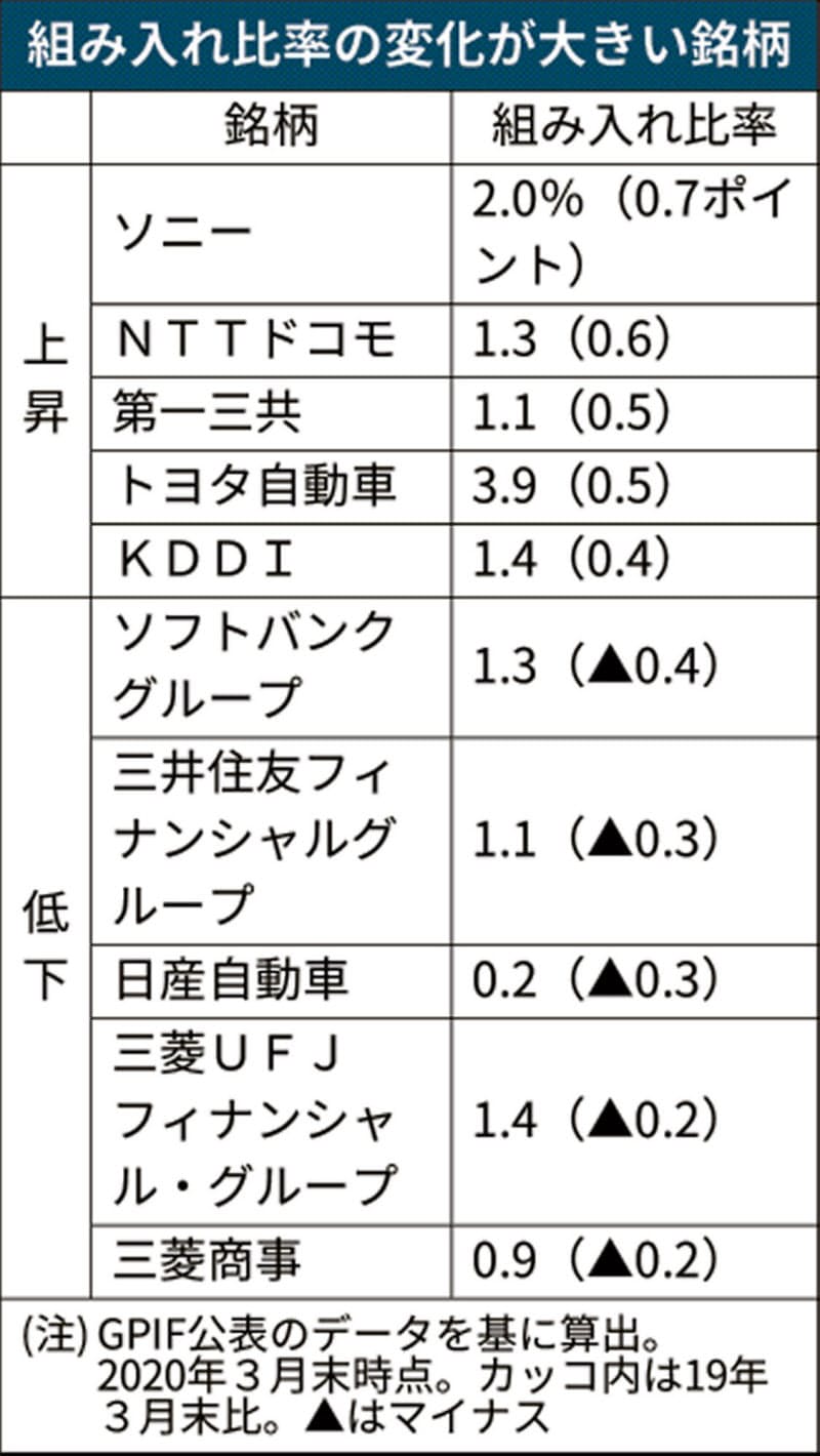 Gpifの組み入れ比率 ソニーやドコモ上昇 日本経済新聞